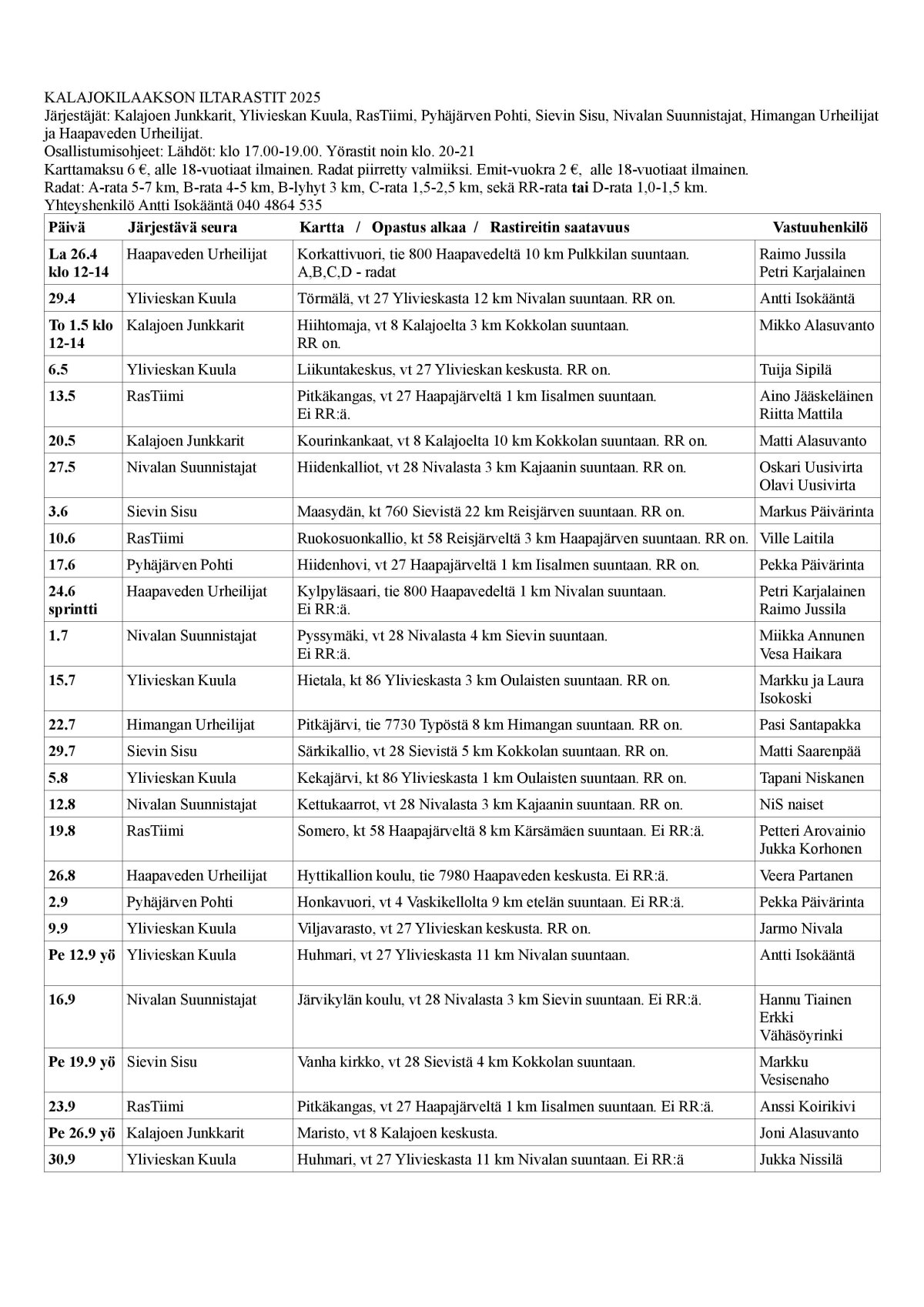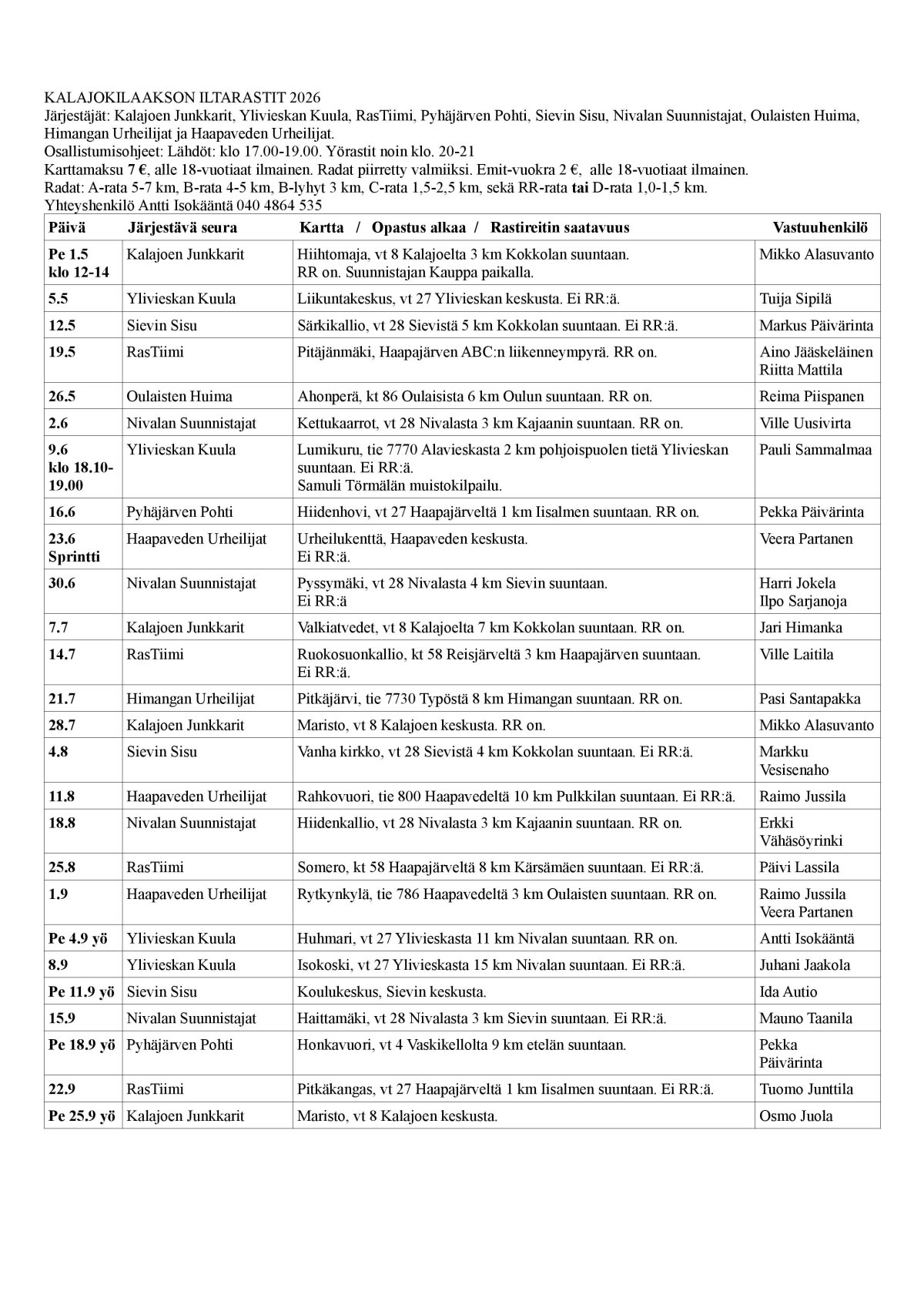 - Kalajokilaakson Iltarasteilla on tehty 119 325 suoritusta (1983-2022).